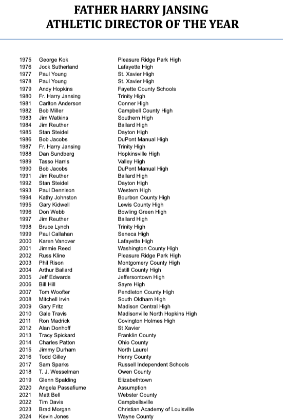 Paul M. Young of St. Xavier High School in Louisville and Andy Hopkins of the Fayette County School System in Lexington began the formation of the KAAA in 1971, after they had attended the National Athletic Directors' Conference in Columbus Ohio. Upon returning to Kentucky, they began organizing the Association. Small organizational meetings were held with the first statewide meeting being on April 12, 1973, at St Xavier High School. At the end of the first year there were twenty-seven charter members.